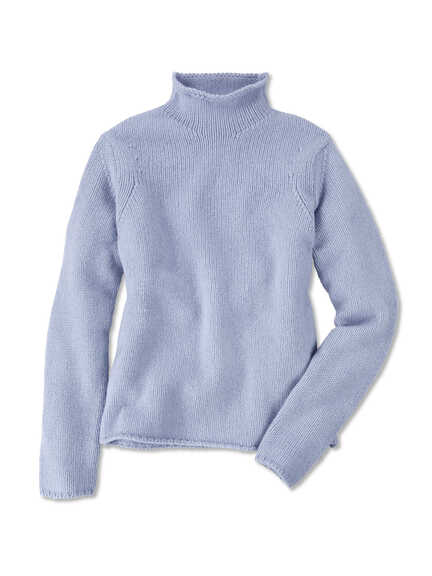 Turtleneck-Pullover betonen den Hals und das Gesicht. Helle Töne wie Beige, Weiß und Hellblau lassen das Gesicht strahlen und wirken weich, während dunklere Farben wie Navy und Bordeaux intensiver und markanter sind. Achten Sie auf die Kragenform: Ein einfacher, nicht umgeschlagener Kragen betont die Halspartie weniger. Wie Sie Ihren Rollkragenpullover aus Merinowolle oder Kaschmir pflegen, erfahren Sie in unseren Wollpflegetipps.
