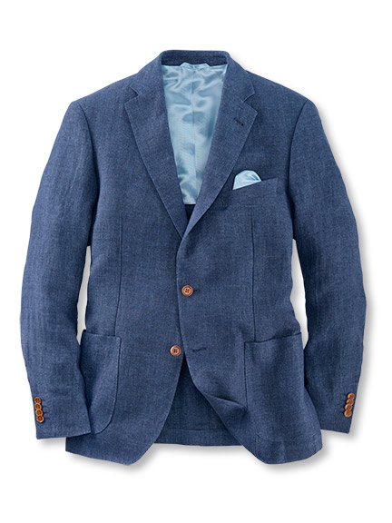 Das Leinensakko in meliertem Marine hält die Balance zwischen sportlich und korrekt. Darunter eine camelfarbene Chino, beweglich genug für lange Tage, schick genug für den Auftritt auf der Wimbledon-Tribüne. Die Baumwollkrawatte mit dem „Strawberry-Thief“-Motiv bringt britische Tradition ins Spiel, während der Sneaker bequem bleibt – egal, ob auf dem Rasen oder beim Pimm’s danach.