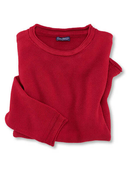 Eine leichte Barbour-Wachsjacke für wechselhaftes Großstadtwetter oder kühle Countryside-Tage, dazu ein cherryroter Pullover als sofortiger Stimmungsaufheller.