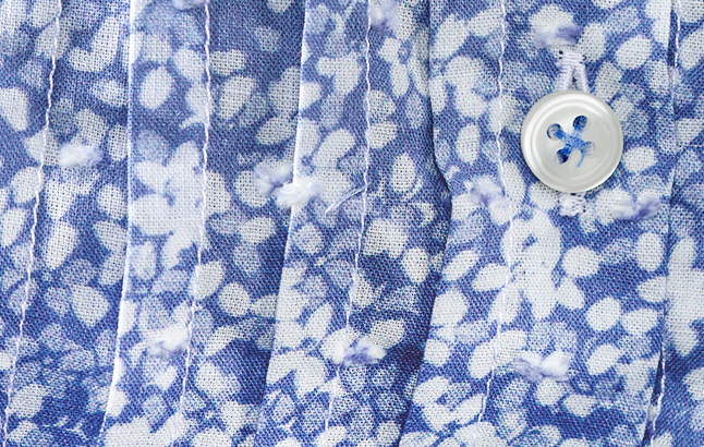 Wir verwenden die weltberühmten Stoffe von Liberty London, die für ihre feinen „Millefleurs“-Muster (Streublumen) und die seidig-weiche Tana Lawn™-Cotton bekannt sind. Diese Dessins verleihen jeder Bluse einen Hauch von Art-Déco-Eleganz und zeitloser Romantik.