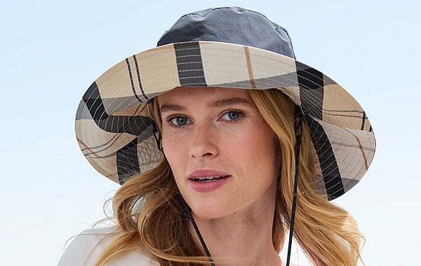 Dieser Sommerhut feiert seit einigen Jahren ein Comeback. Lange Zeit als Anglerhut und Accessoire für Fischer und Jäger verspottet, zeigen die neuen Dessins im Barbour Tartan oder leuchtenden Farben, wie modisch der runde Stoffhut sein kann. Die nach unten geneigte Krempe schützt das Gesicht vor einem plötzlichen Regenschauer.