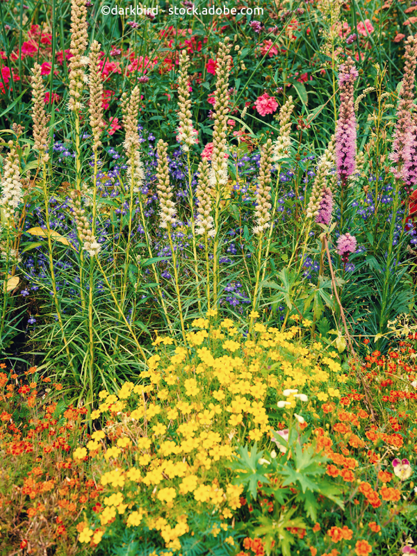 Hohe Blütendichte und vertikale Schichtung stärken das Nahrungsnetz. Ein Zusammenspiel von Früh- und Dauerblühern garantiert ein gleichbleibendes Nahrungsangebot für Insekten und Vögel vom Frühling bis in den Herbst.