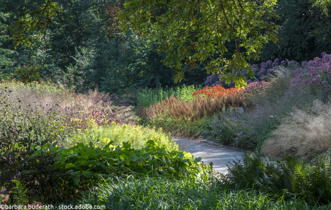 Herzstück der britischen Gartenkunst sind die „English Borders“, eine tief gestaffelte Staudenrabatte, die durch ihre elegante Farb- und Formstrenge besticht. Auch dieses Gestaltungsprinzip lässt sich ökologisch aufwerten, indem wir die gestalterischen Regeln mit den Prinzipien einer hohen Biodiversität verschränken.
